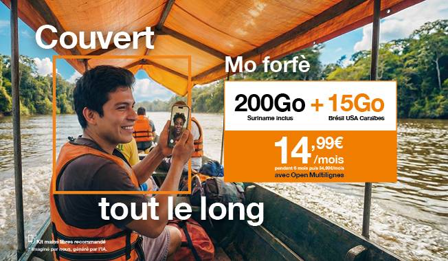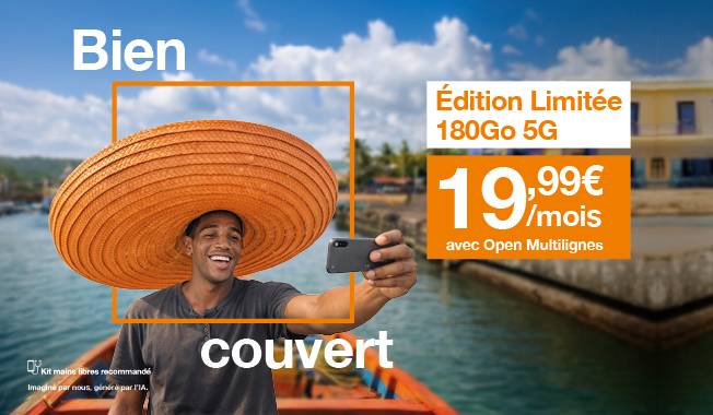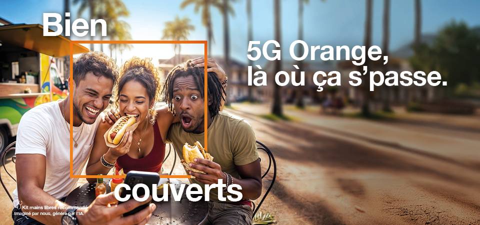 5G pour tous: Accès disponible pour les clients détenteurs d’une offre mobile Orange Grand public. Disponible du 27 janvier 2026 au 08 avril 2026 inclus. Réseau 5G uniquement accessible dans les zones déployées – Carte de couverture disponible sur orangecaraibe.com. Sous réserve d'éligibilité et de comptabilité technique sur réseaux et terminaux compatibles ».